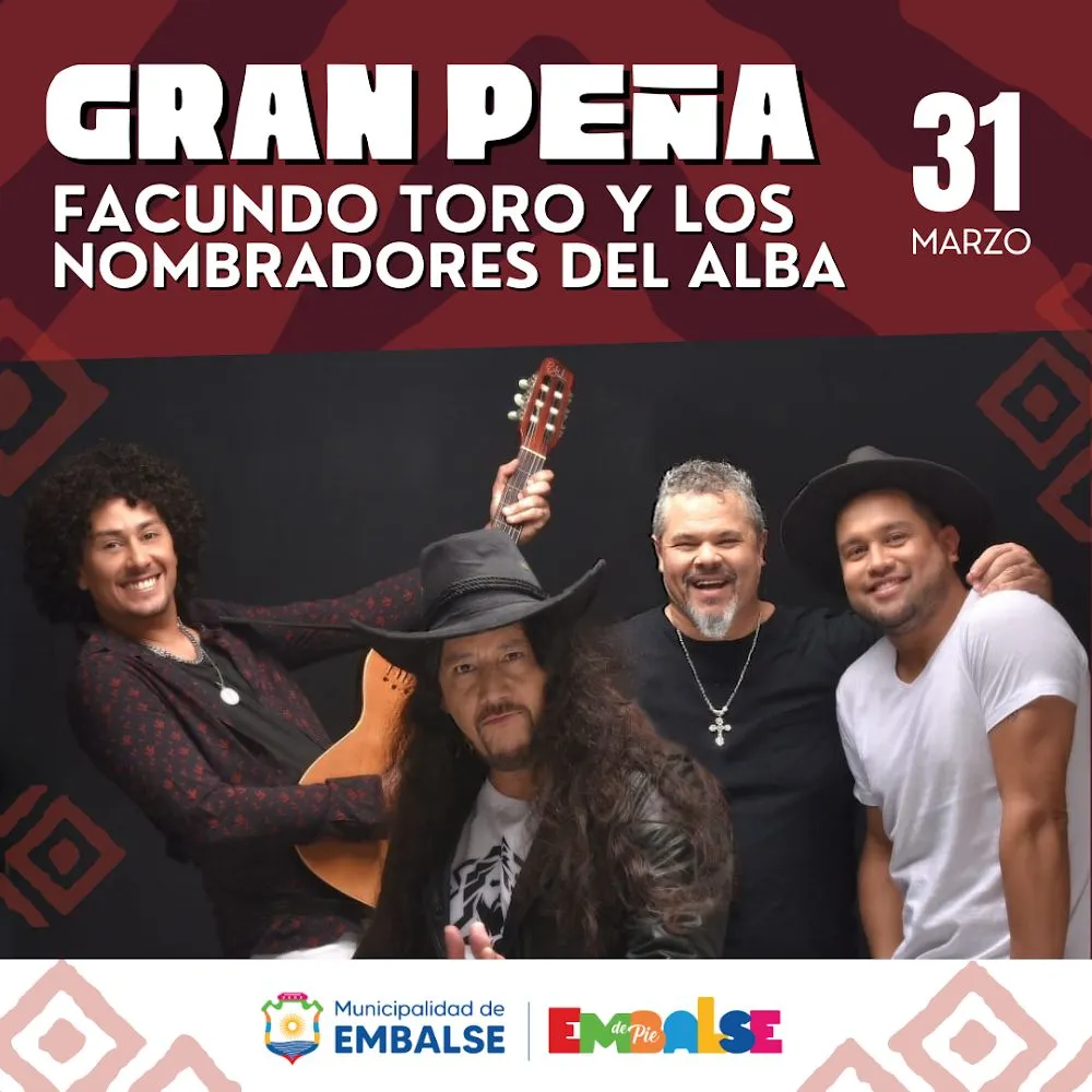 El reconocido cantor popular Facundo Toro se presentará junto a Los Nombradores del Alba el domingo 31 de marzo en el evento "Santa Peña" que se realizará en Embalse.