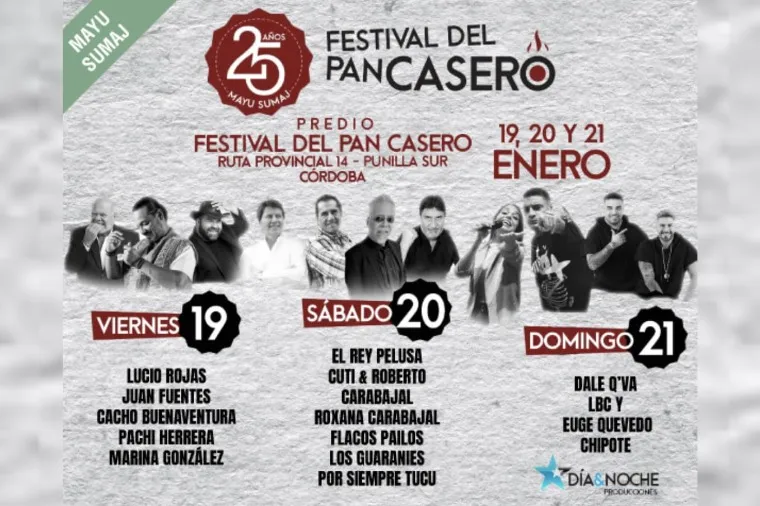“Estamos muy contentos de poder festejar las bodas de plata de este festival que comienza el viernes próximo hasta el domingo. Tendremos artistas de primera línea además de un gran patio gastronómico y puestos de artesanos. Lucio Rojas, Juan Fuentes, Cacho Buenaventura, el Flaco Pailos y Pelusa, entre otros grandes artistas de la grilla”.
