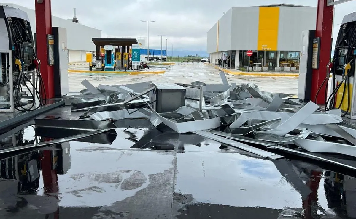 La tormenta que azotó la región sudeste de la provincia de Córdoba dejó importantes daños en una estación de servicio Shell, ubicada a la vera de la autopista Cordoba-Rosario.
